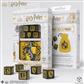 Detta set är mer än bara tärningar - det är en upplevelse. Varje detalj i designen har noggrant valts ut för att spegla Hufflepuffs anda. Glitterdammet i tärningsmaterialet gör de svarta och gula färgerna både fascinerande och ögonfångande. Låt oss titta närmare på vad som ingår i detta fantastiska paket: