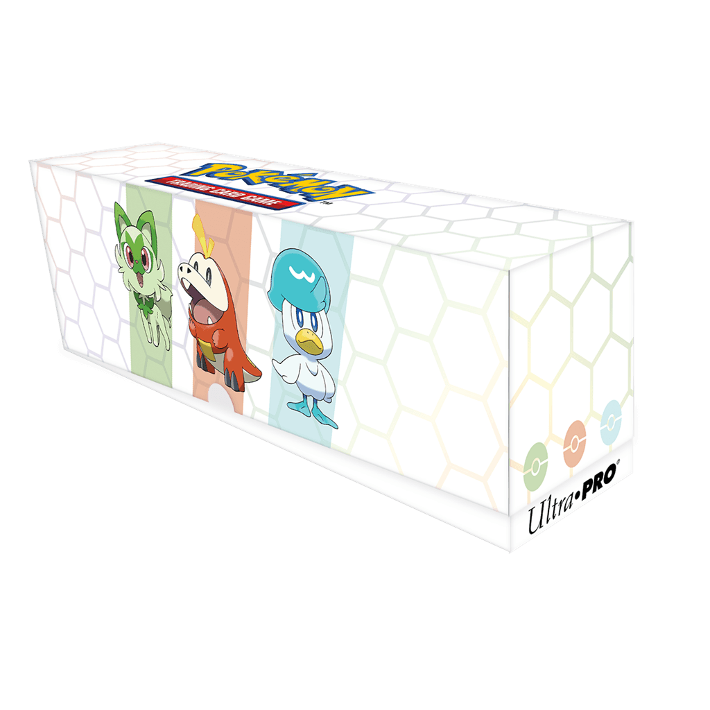Detta paket är inte bara praktiskt utan också estetiskt tilltalande, vilket gör det till ett perfekt tillägg till din Pokémon-samling. Den full-view Deck Box® är designad för att rymma 80+ standardstorlek TCG-kort och gör det enkelt att visa upp dina mest värdefulla kort. Med vårt UP - Paldea Region Första Partner Paket får du det bästa av två världar; funktion och stil!